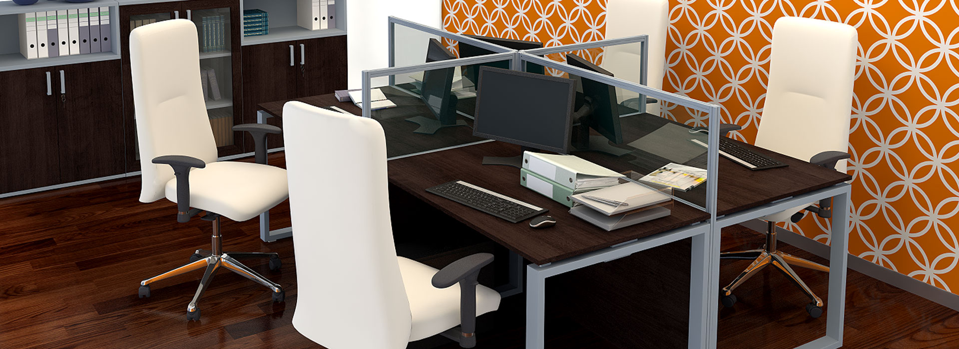 Ścianki działowe Ohio w profilach aluminiowych 32 mm, znakomicie spełniają swoją rolę przy aranżacji pomieszczeń typu open space lub jako boksy do call center. Zastosowanie wygłuszającej tapicerki z pianką pozwala znacząco zmniejszyć hałas w biurze. Zalecamy stosowanie tapicerki wygłuszającej powyżej wysokości blatu biurka, a poniżej dać płytę meblową lub otwartą przestrzeń. Uzupełnieniem są wypełniena z przezroczystej pleksi dopuszczającej światło do stanowiska pracy.
